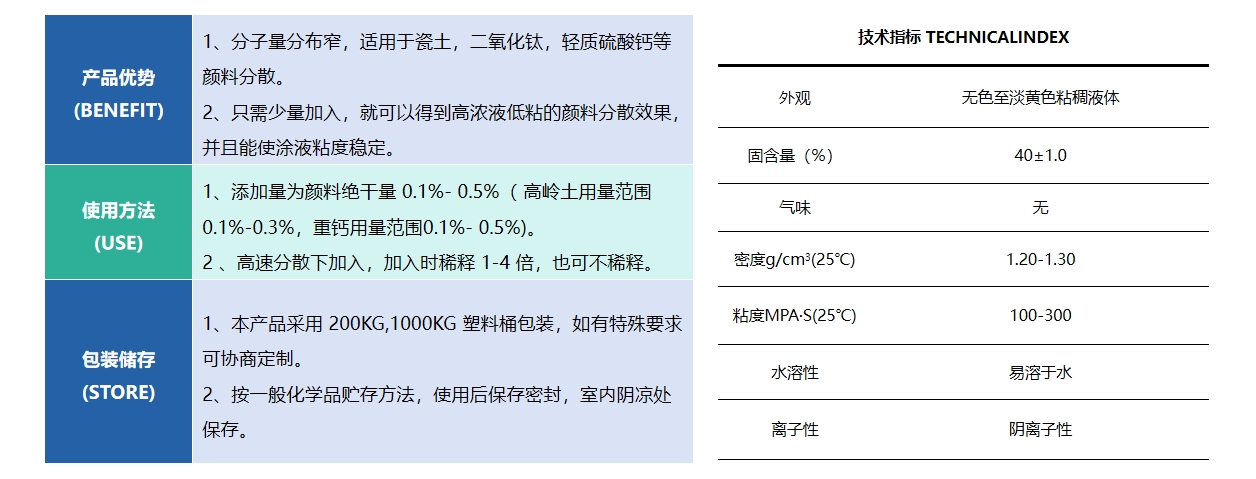 HQ-S933M 分散劑,是聚胺酸系列涂料分散劑,極易溶于水,對(duì)無(wú)機(jī)頻料 有很好的分散劑和降粘效果。使涂布漿料有極具流動(dòng)性。