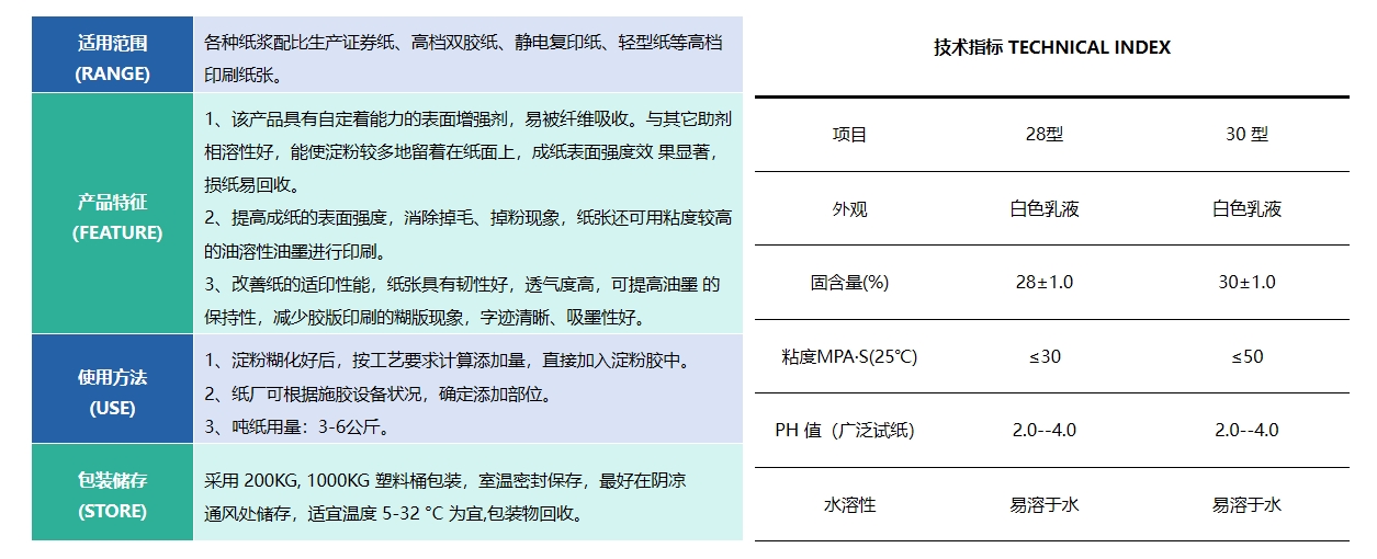 HQ-SC913 陰離子紙張表面增強劑 該產品是苯乙烯丁酯系列的高分子共聚物,其成膜性好,與纖維結合力比較強,大大改善成紙物理表面性能,提高紙張的表面強度,防止掉毛、掉粉現(xiàn)象,同時能提高紙張的物理強度、平滑度、改善紙的印刷性能。適應當前高速印刷機的需求及多色套色印刷的潛在市場。使用過程中可以與增稠劑混合使用,是一種較理想的表面性能修飾劑。